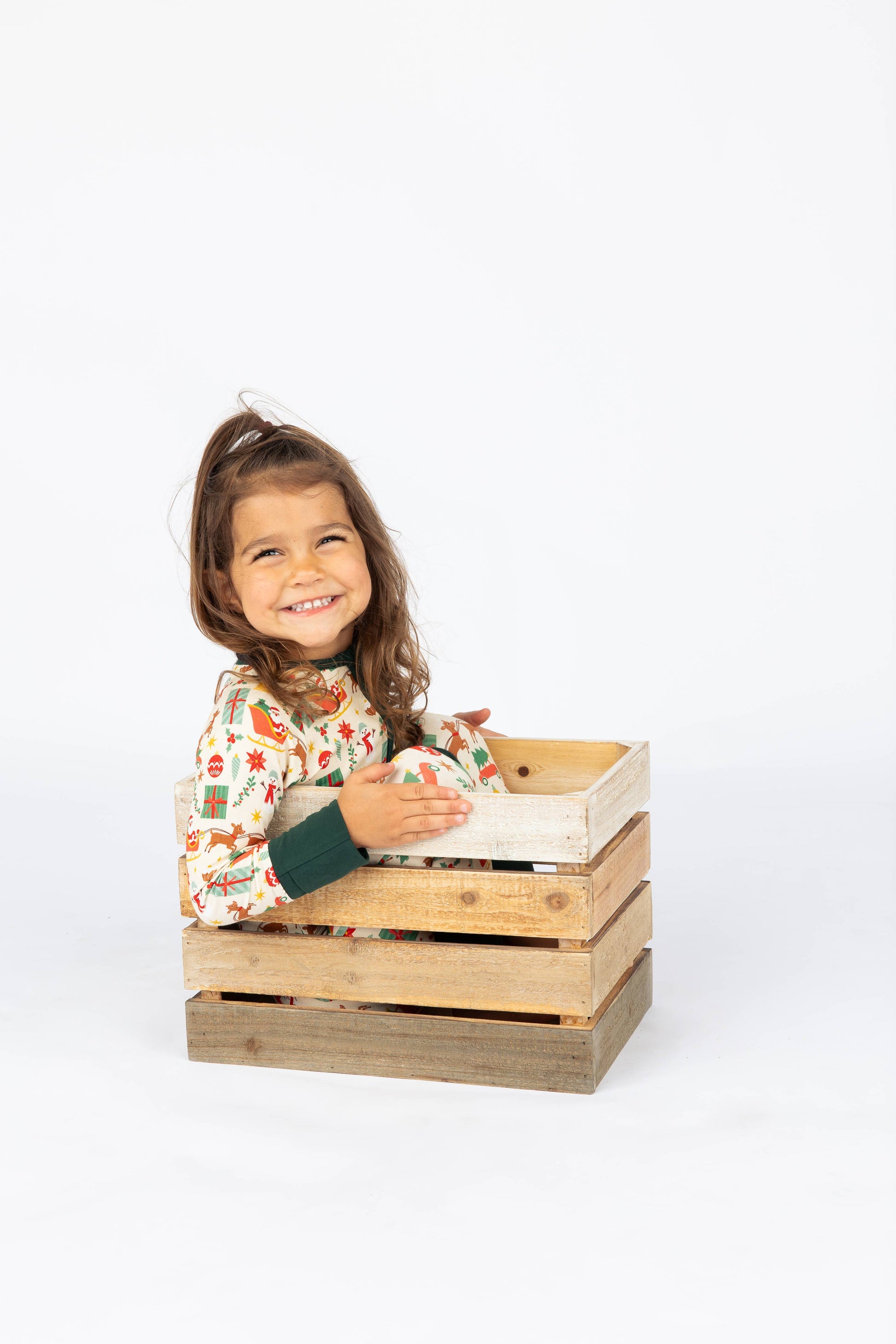 The softest bamboo baby pajamas in our Vintage Christmas pattern! This fun holiday print full of classic Christmas icons is perfect for winter. Check out more with this print for the cutest sibling match!